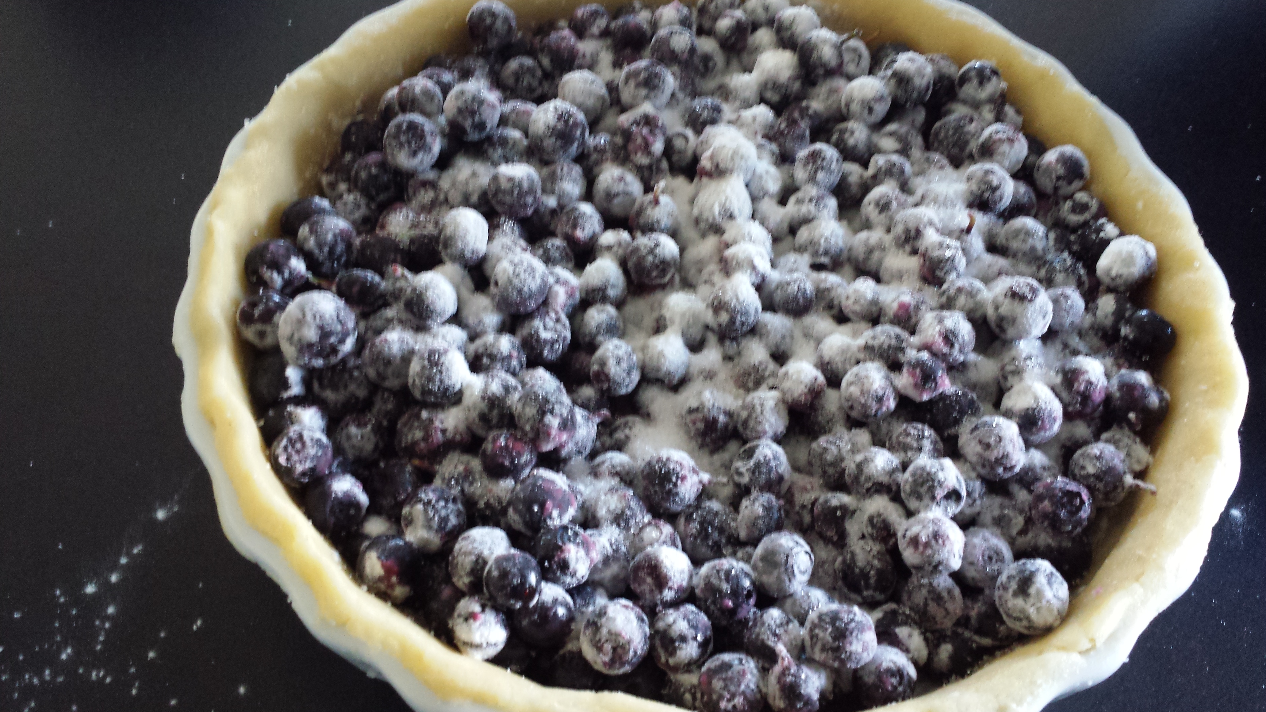 - Lägg i blåbär och pudra över potatismjöl på blåbären.