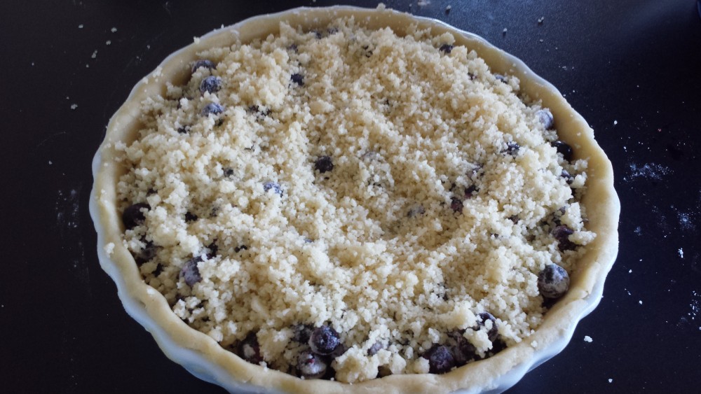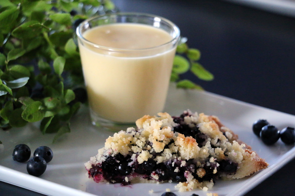 - Blanda ihop alla ingredienser till smuldegen och strö över blåbären.