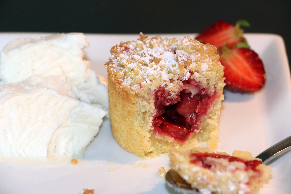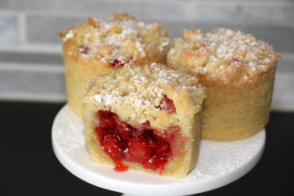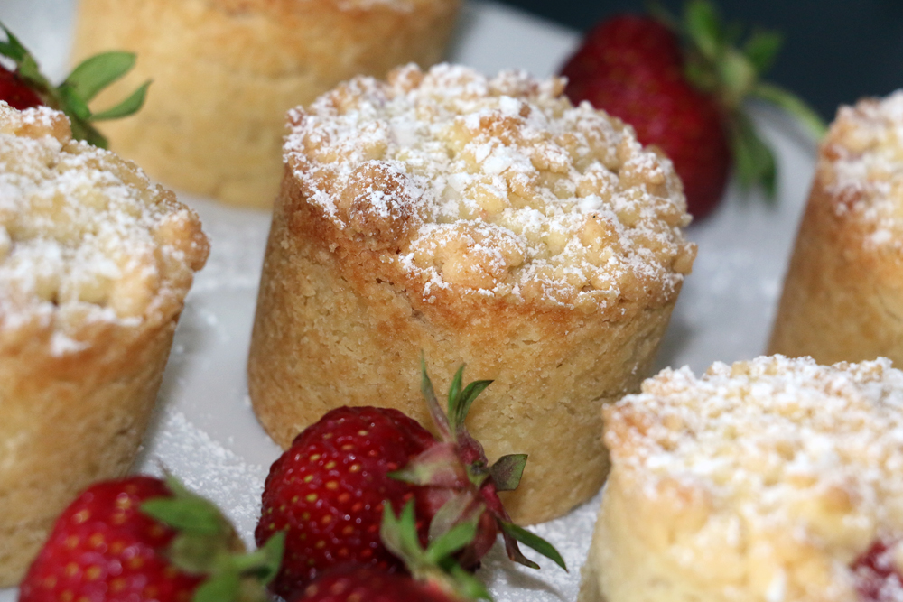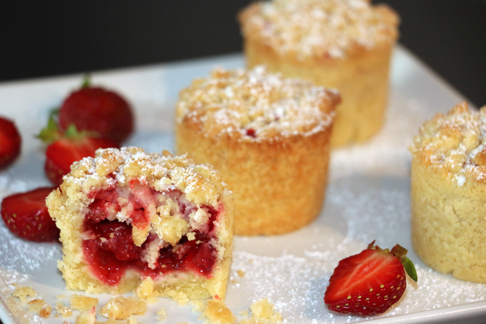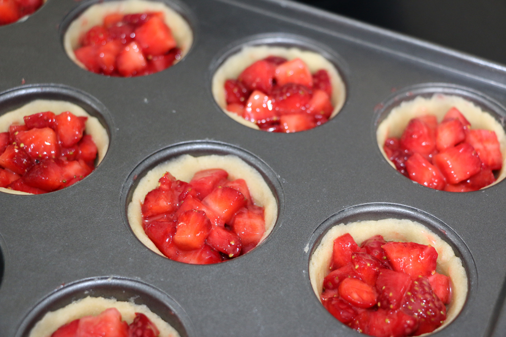 - Grädda jordgubbsgömmorna i nedre delen av ugnen i 15-18 minuter, tills de fått en gyllenbrun färg.