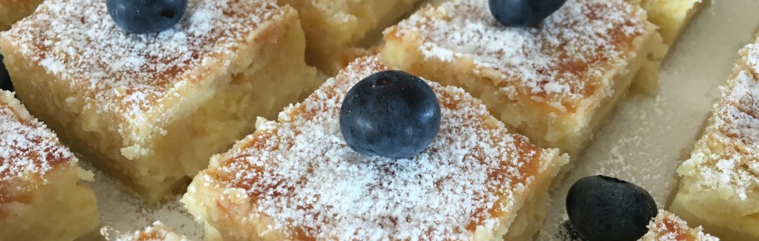 - Grädda strax under mitten i ugnen, cirka 35 minuter. Låt svalna och skär i rutor eller trianglar.